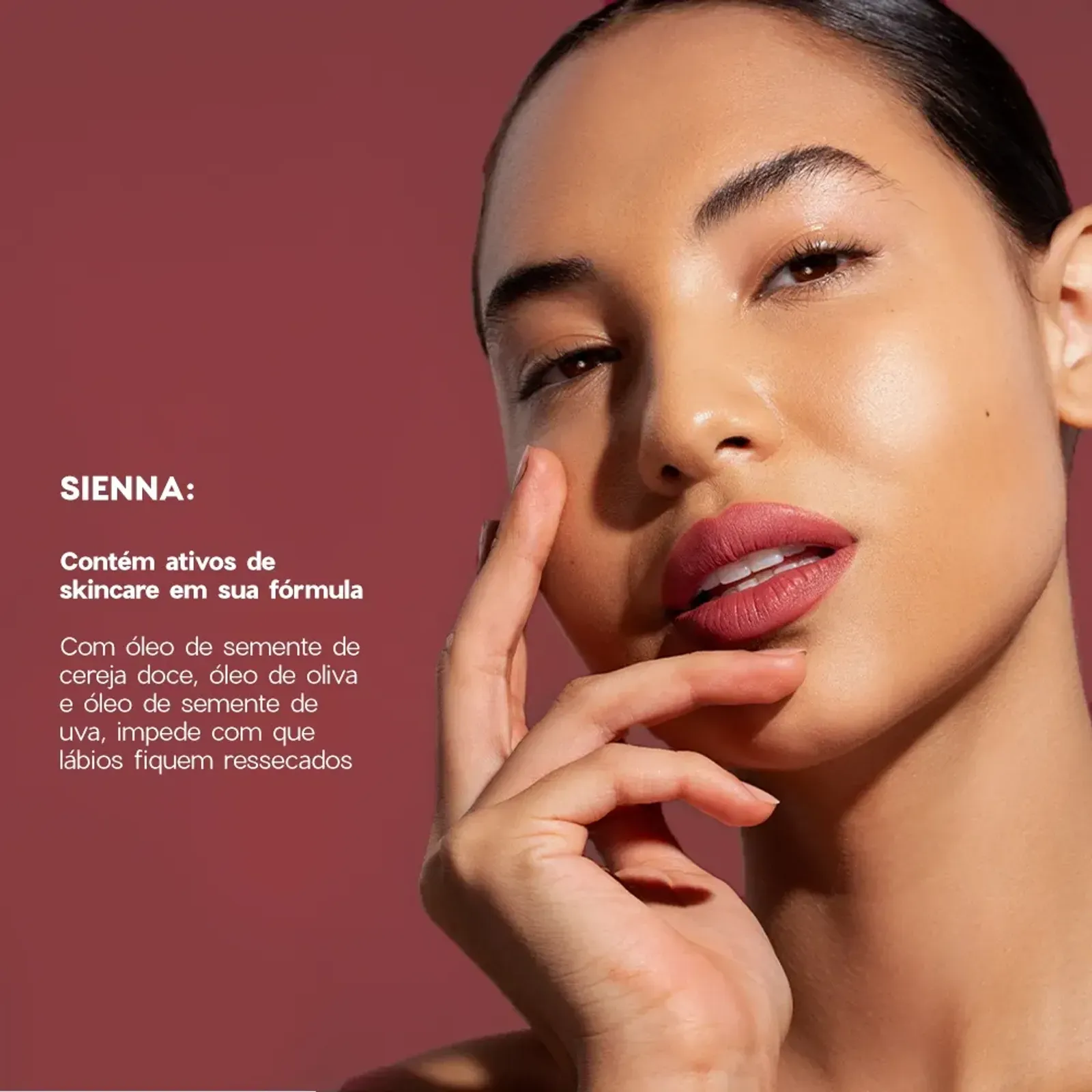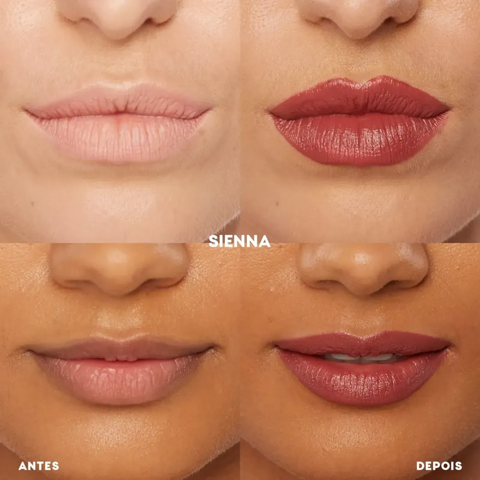 Sienna é uma tonalidade nude rosada que deixa seu look bem natural. Mas além dessa cor belíssima, ele também tem alta pigmentação, cobertura uniforme. Ou seja, ele preenche todos os requisitos de um batom incrível!