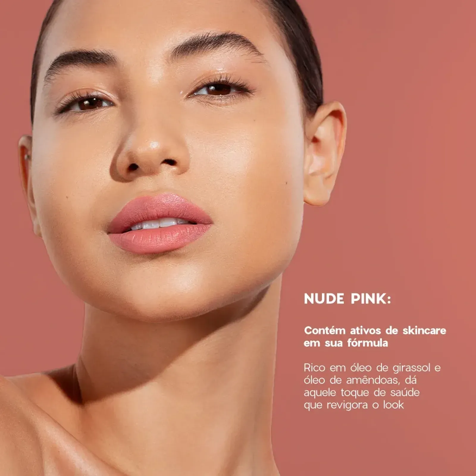 A cor Nude Pink traz aquele toque de sofisticação para o visual, deixando sua Boca com um tom rosado lindo.