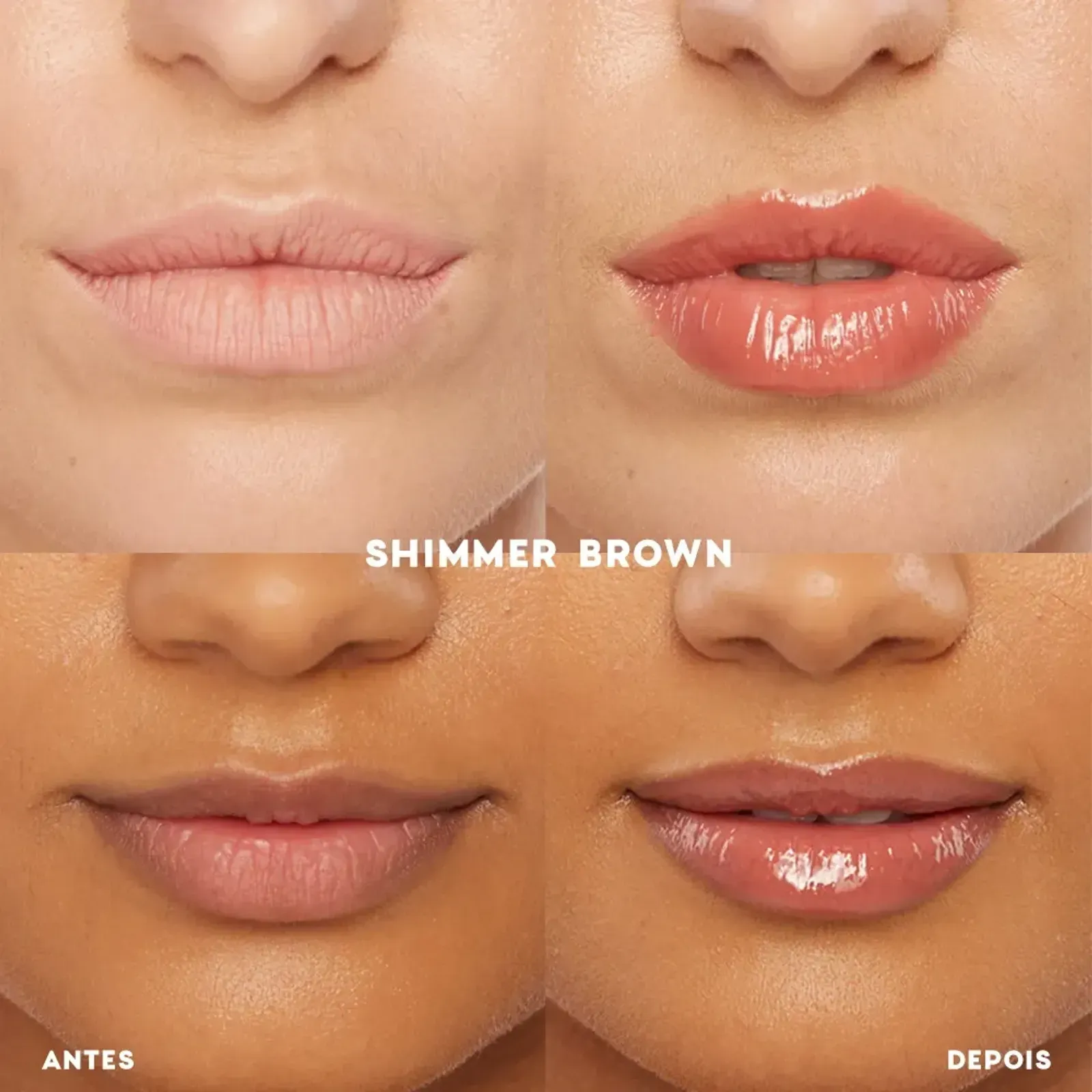 cor Shimmer Brown é um nude bem discreto, que pode ser usado sozinho ou por cima do seu batom favorito, trazendo ainda mais poder e sofisticação para a produção. Compacto, esse produto permite que você leve seu brilho para qualquer lugar!