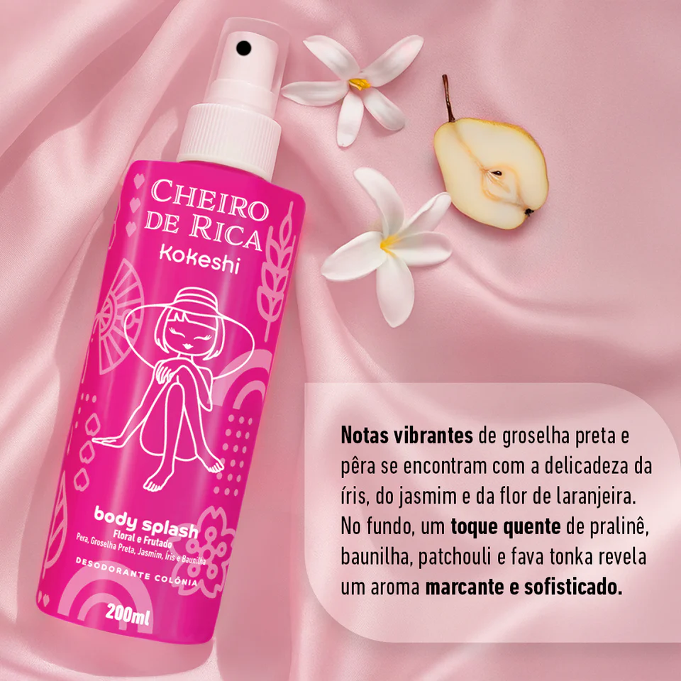 Já pensou em sair de casa com uma fragrância que transmite romantismo e doçura na medida certa? Inspirado na icônica Delina de Parfums de Marly, o Body Splash Cheiro de Rica da Kokeshi foi feito para quem busca encantar com leveza e sofisticação — porque ser romântica é exalar delicadeza e presença com autenticidade.