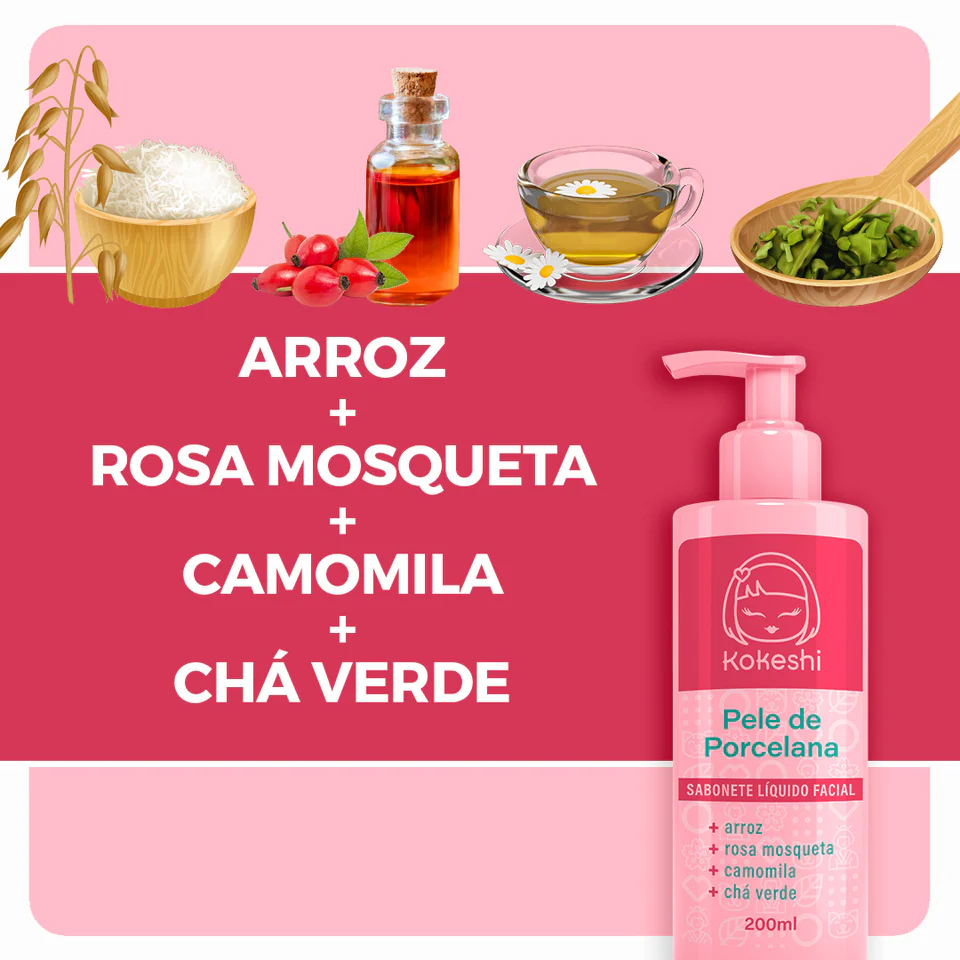 Ativos: Arroz, camomila, rosa mosqueta e chá verde